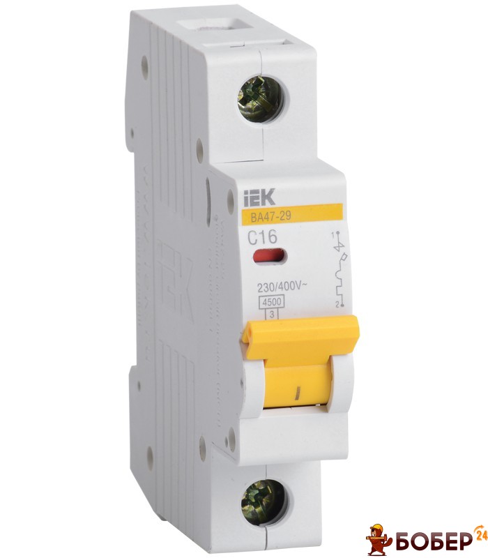 Автоматичний вимикач IEK BA47-29 1П 16А 4,5кА х-ка С УКТ ЗЕД 8536 20 10 00